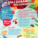 7:45 – 9:00 – ZABAWA NA KONSTRUKCJI (w przypadku pozostawienia dziecka we wcześniejszych godzinach) 10:00 – 11:00 – ZABAWA NA KONSTRUKCJI 11:00 – 11:30 – DRUGIE ŚNIADANIE 11:30 – 13:00 – I BLOK TEMATYCZNY 13:00 – 13:30 – OBIAD + ODPOCZYNEK 13:30 – 15:00 – II BLOK TEMATYCZNY 15:00 – 16:00 – ZABAWA NA TRAMPOLINACH